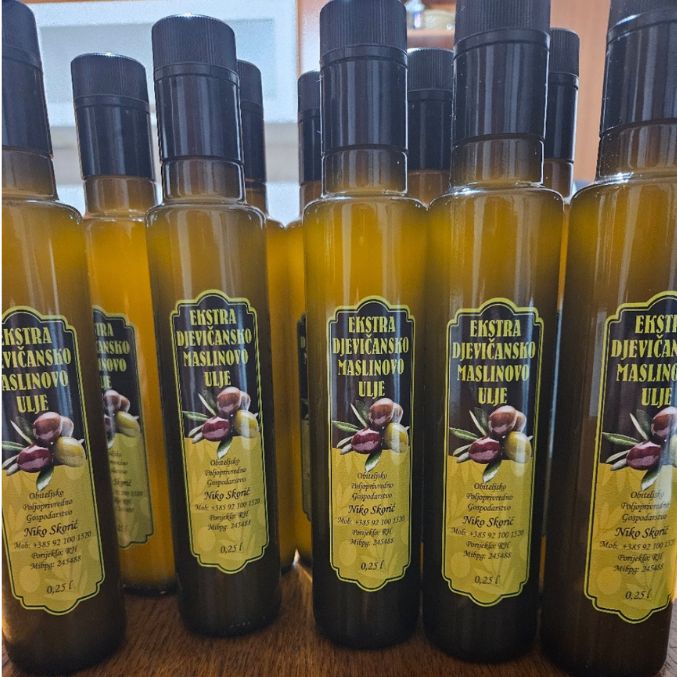 Ekstra djevičansko maslinovo ulje, odlično se slaže sa pečenom ribom i salatom. Nagrade: Brončana medalja Vodice 2025. Cijena: 5,00€