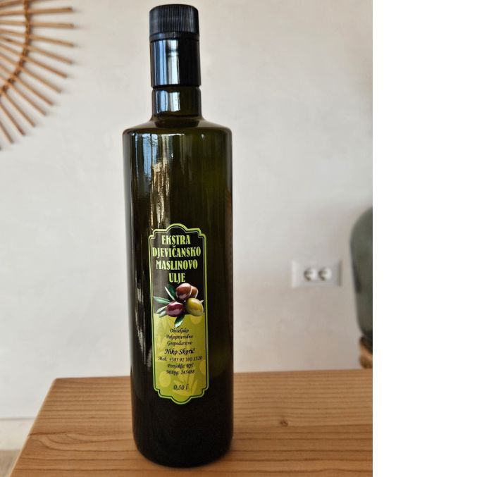 Ekstra djevičansko maslinovo ulje, odlično se slaže sa pečenom ribom i salatom. Nagrade: Brončana medalja Vodice 2025.Cijena: 17,00€